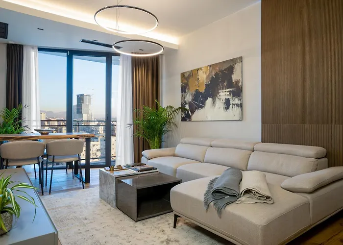 O apartamento Ee Homes - Curated Design, Tub Skyline Views Tirana está localizado em Tirana a 17 minutos a pé da Galeria Nacional de Arte e dispõe de jacuzzi e banheira quente. Os hóspedes podem usar Wi-Fi por motivos de negócios ou lazer.